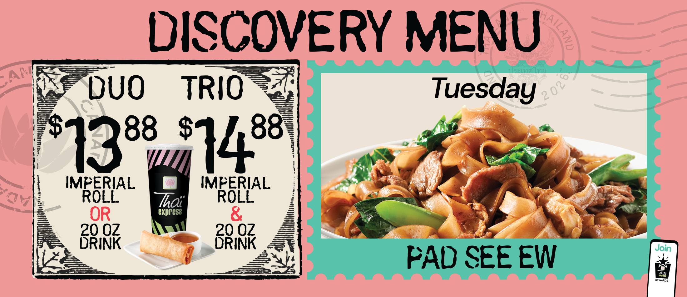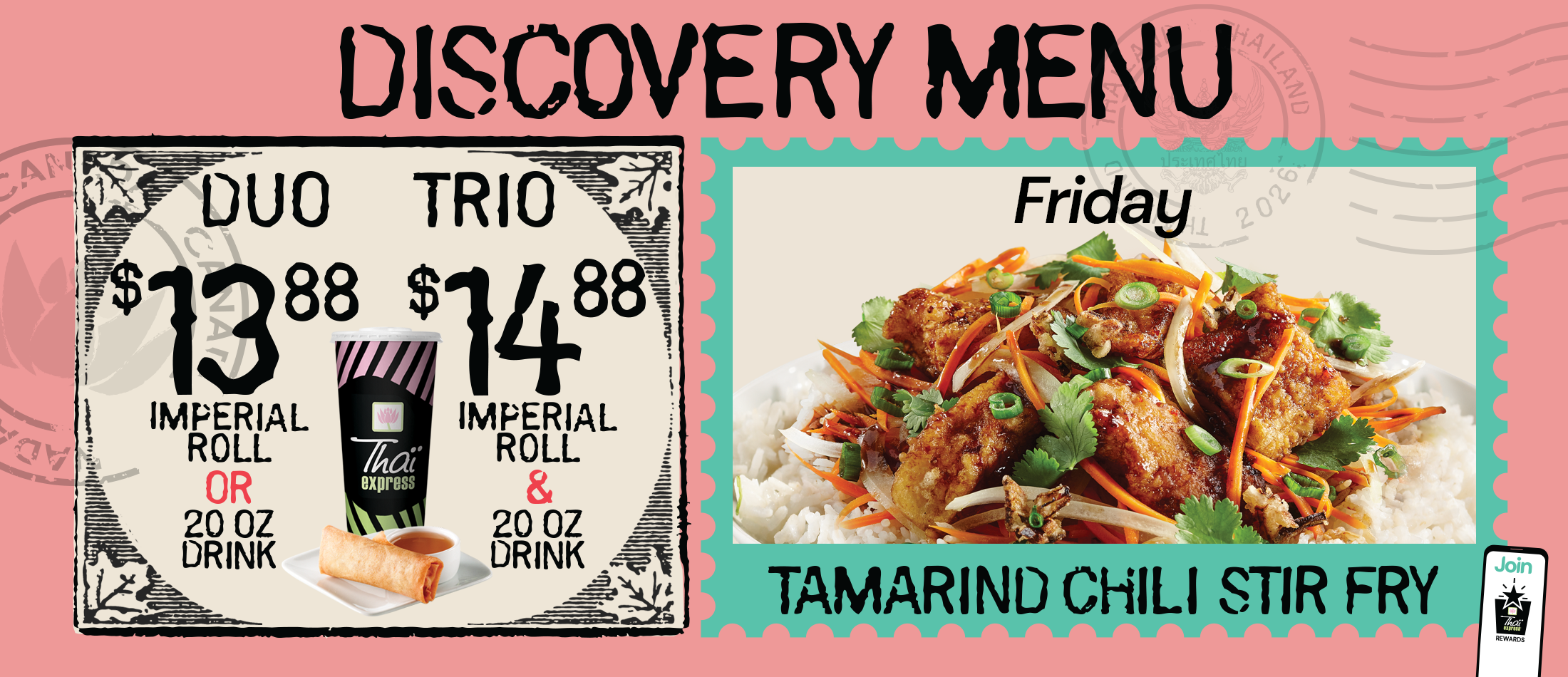 Thaï Express yourself every day of the week with our brand-new Discovery Menu!Our seasonal menu has made a return! Turn any of our daily specials into a duo or trio!