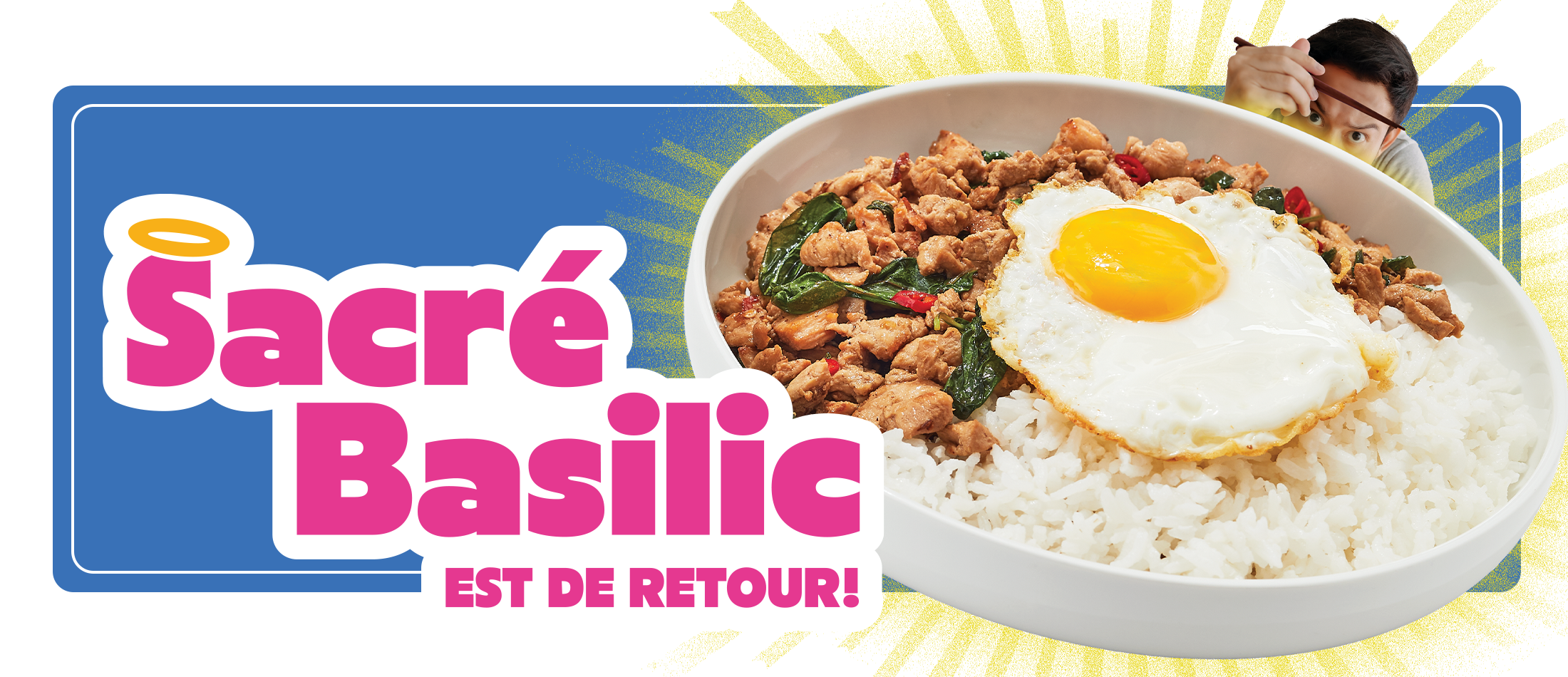 Un authentique sauté au basilic thaï garni d’un œuf frit croustillant et désormais accompagné de tiges de brocoli coupées en dés.