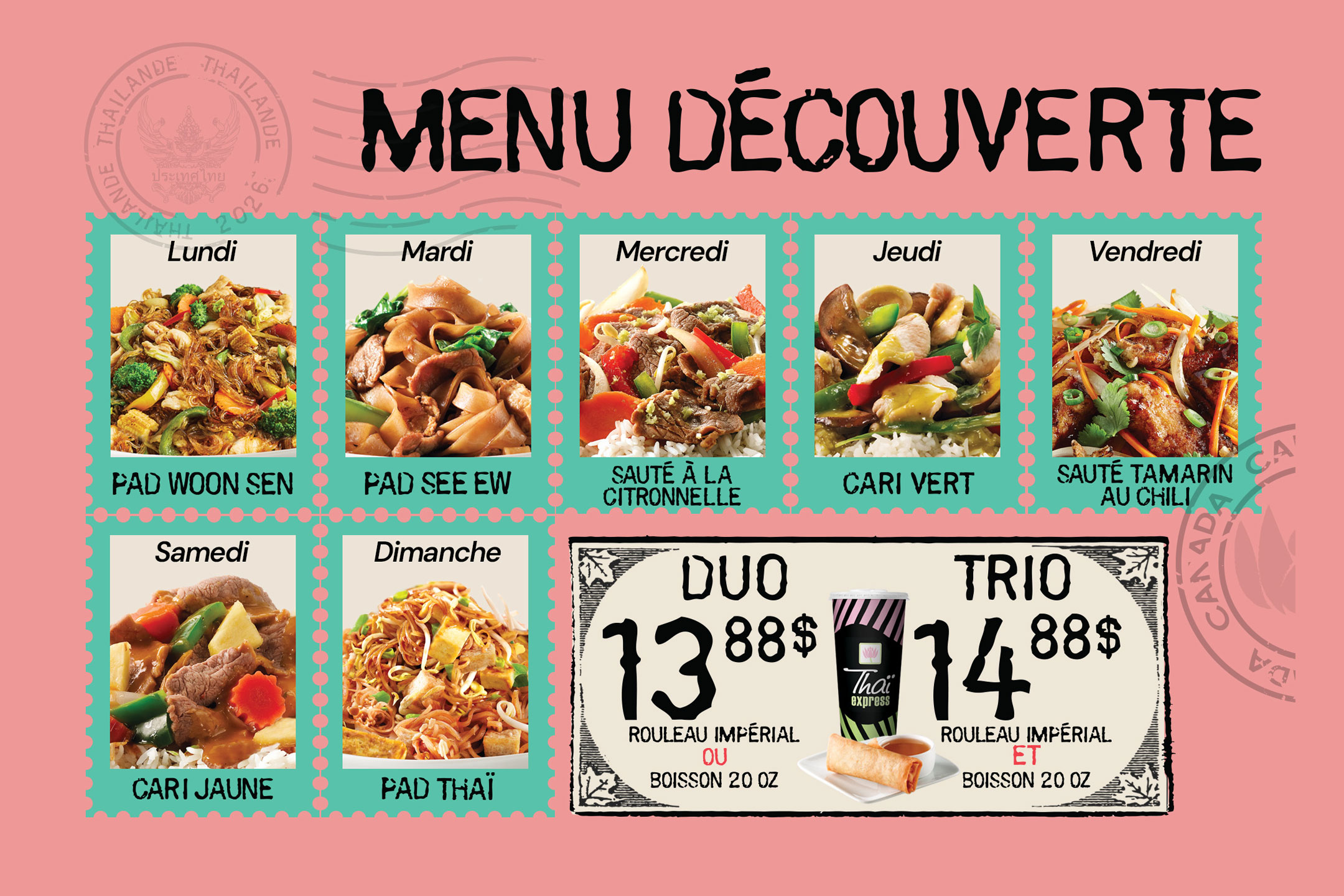Menu découverte Notre menu saisonnier a fait son retour ! Transformez l’un de nos plats du menu découverte en duo ou en trio! En savoir plus »