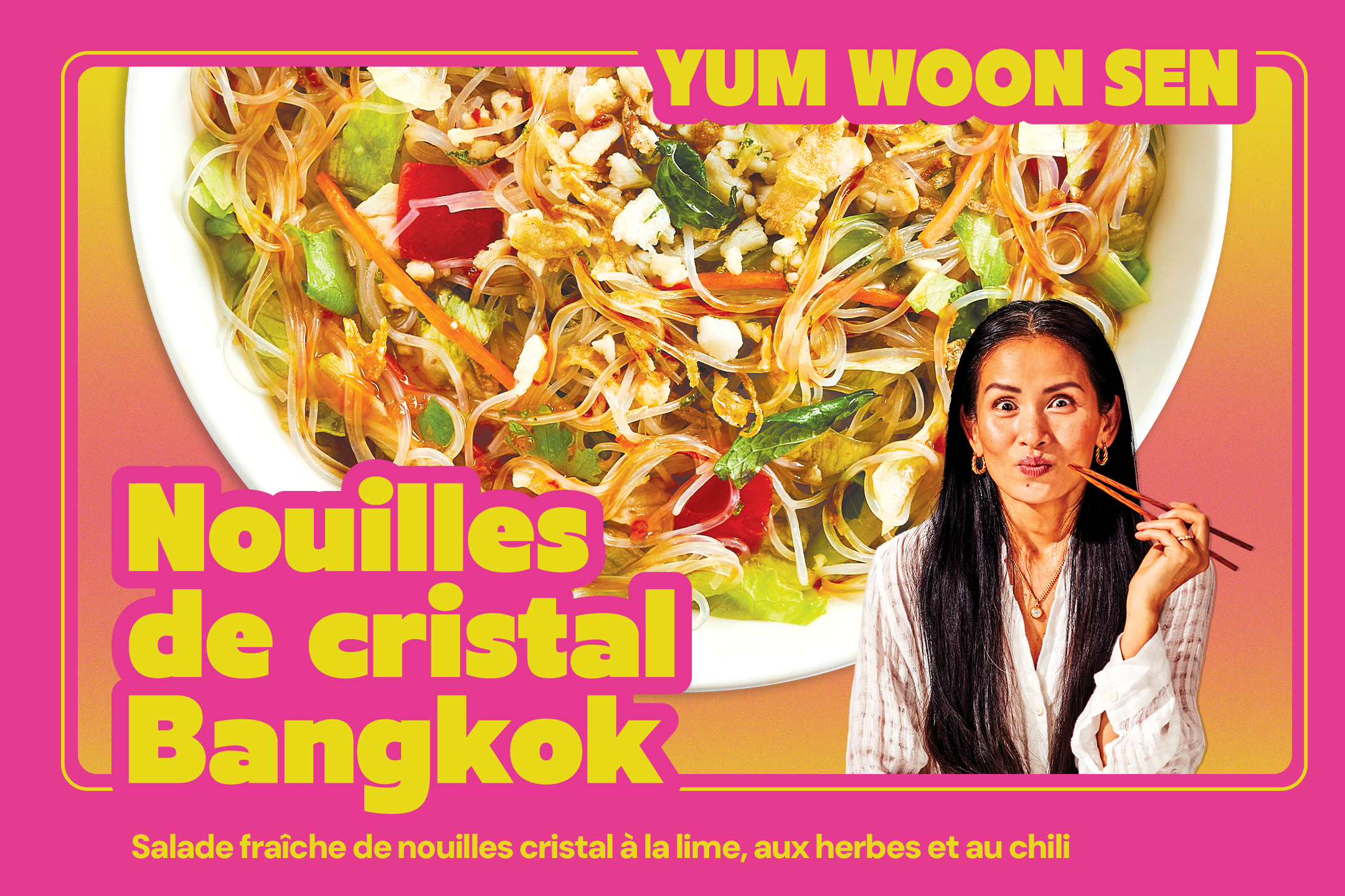 Yum Woon Sen – Nouilles de cristal Bangkok Salade fraîche de nouilles cristal à la lime, aux herbes et au chili. En savoir plus »