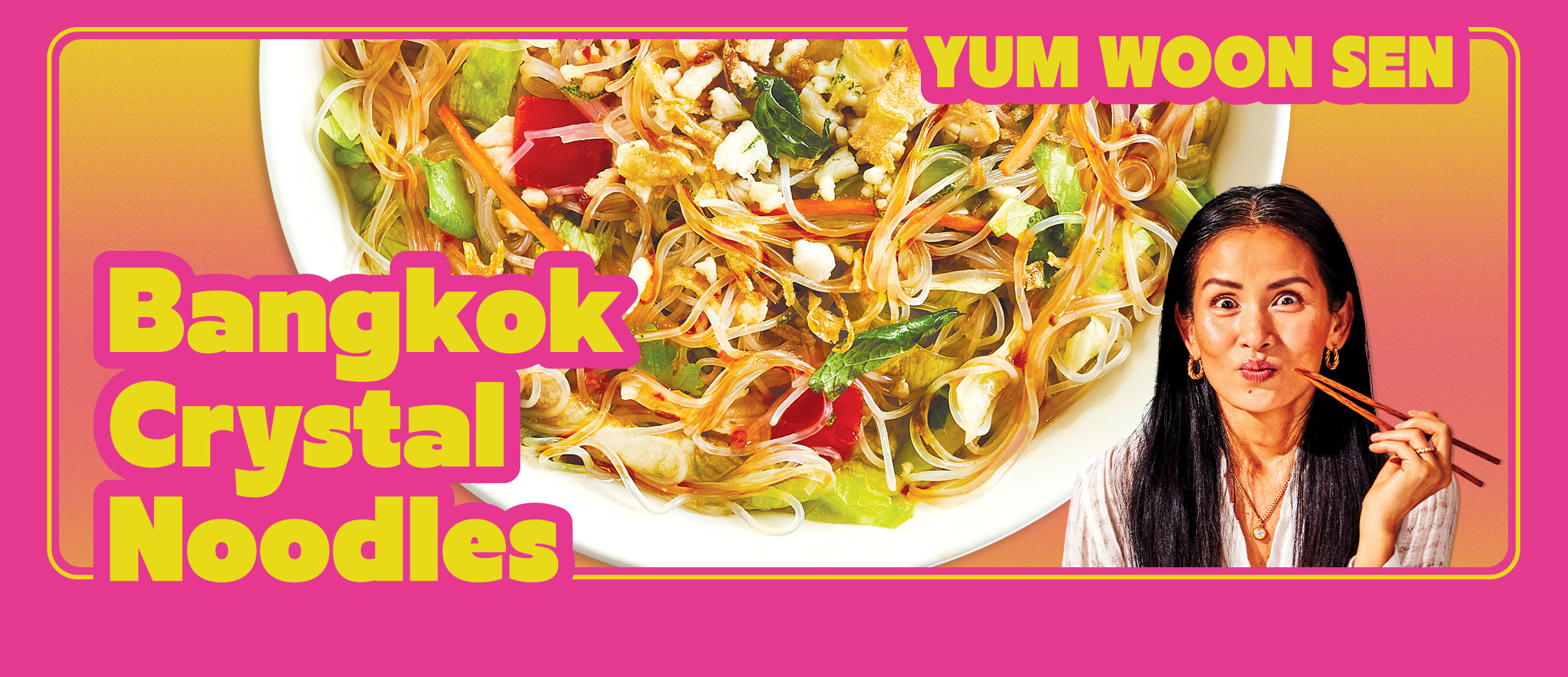 A vibrant and refreshing Thai salad featuring crystal noodles, crisp vegetables, fresh herbs, minced chicken all tossed in our bold Yum Woon Sen dressing.